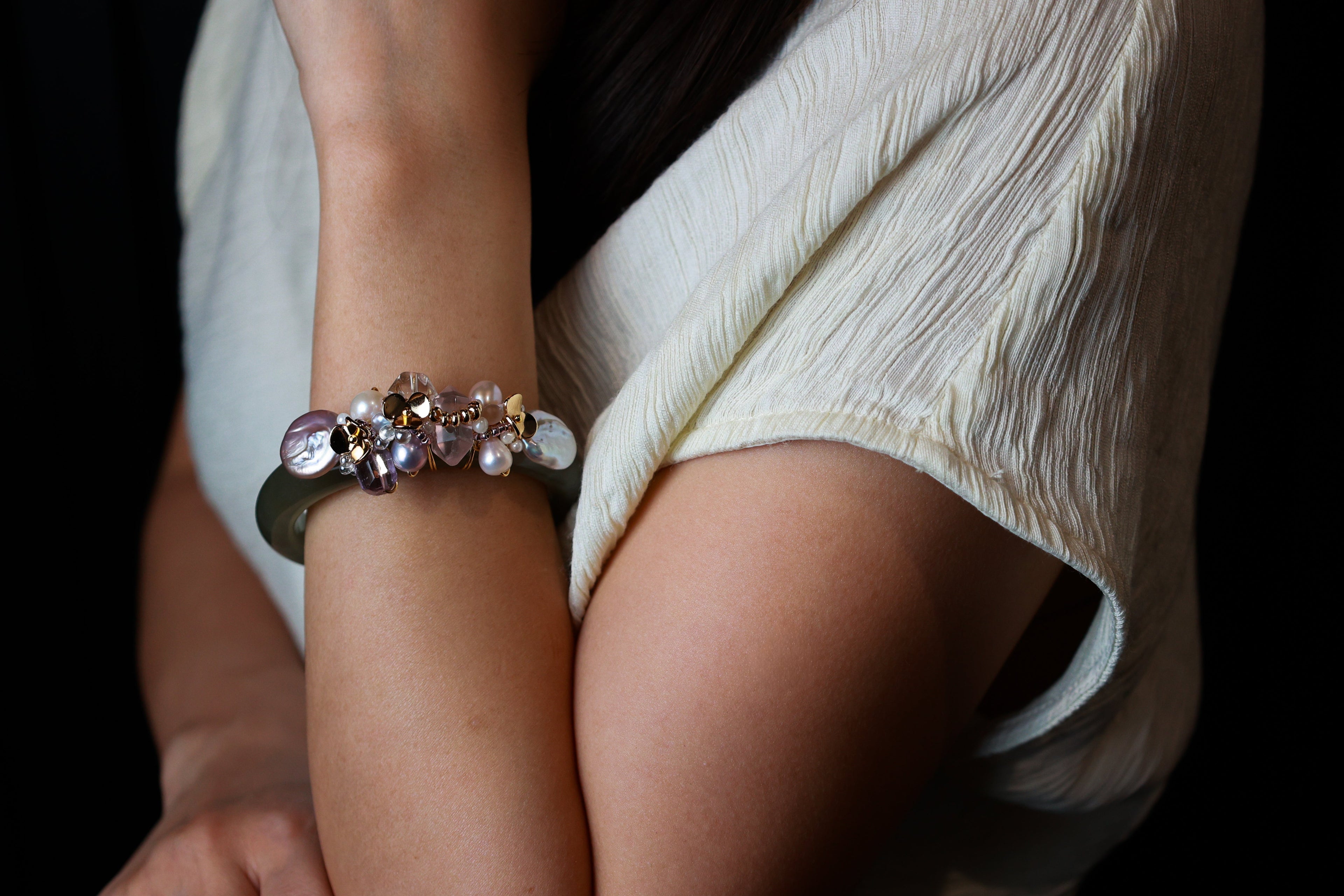 “So pretty! First time seeing jade combined in this way for a bangle. Very innovative”