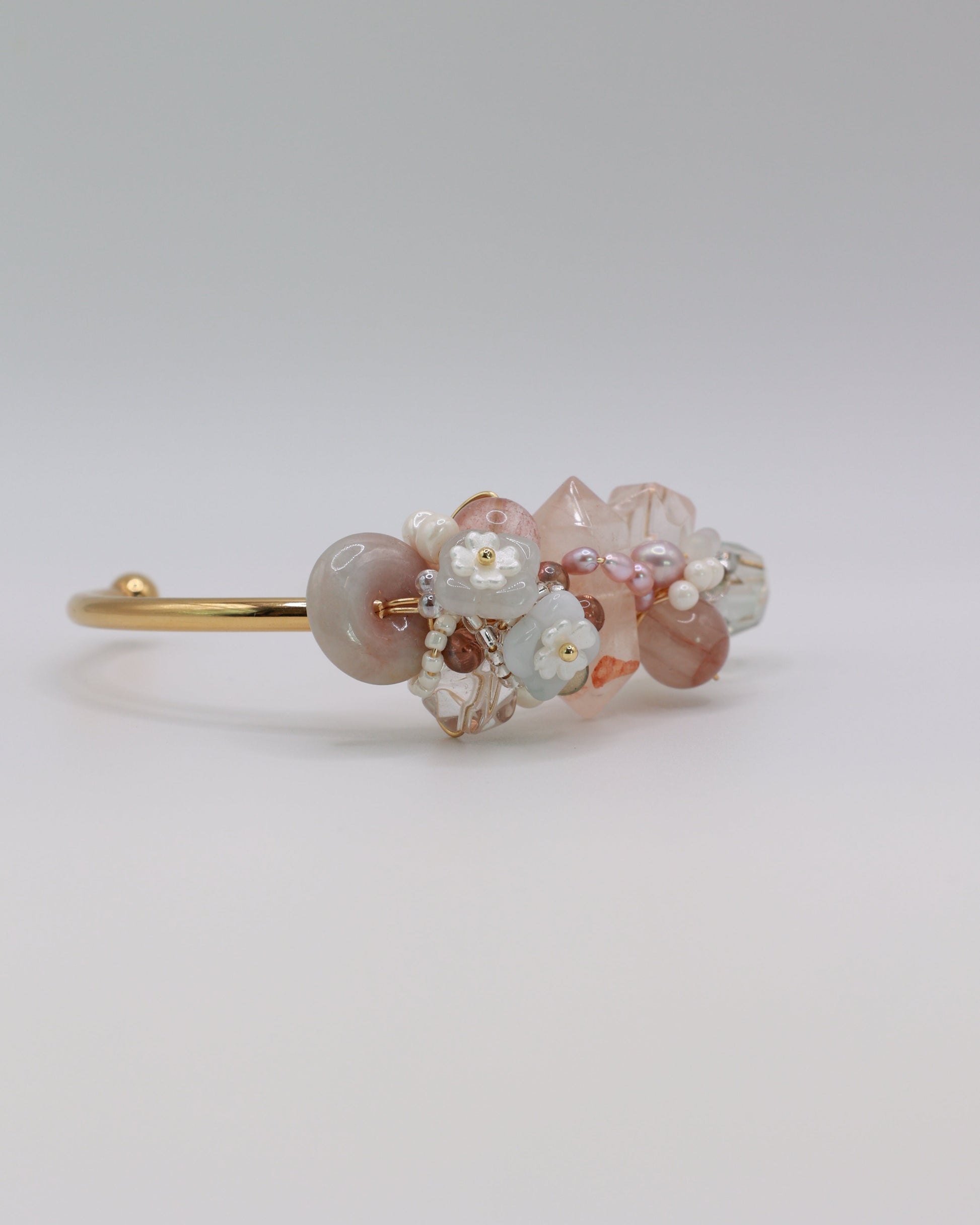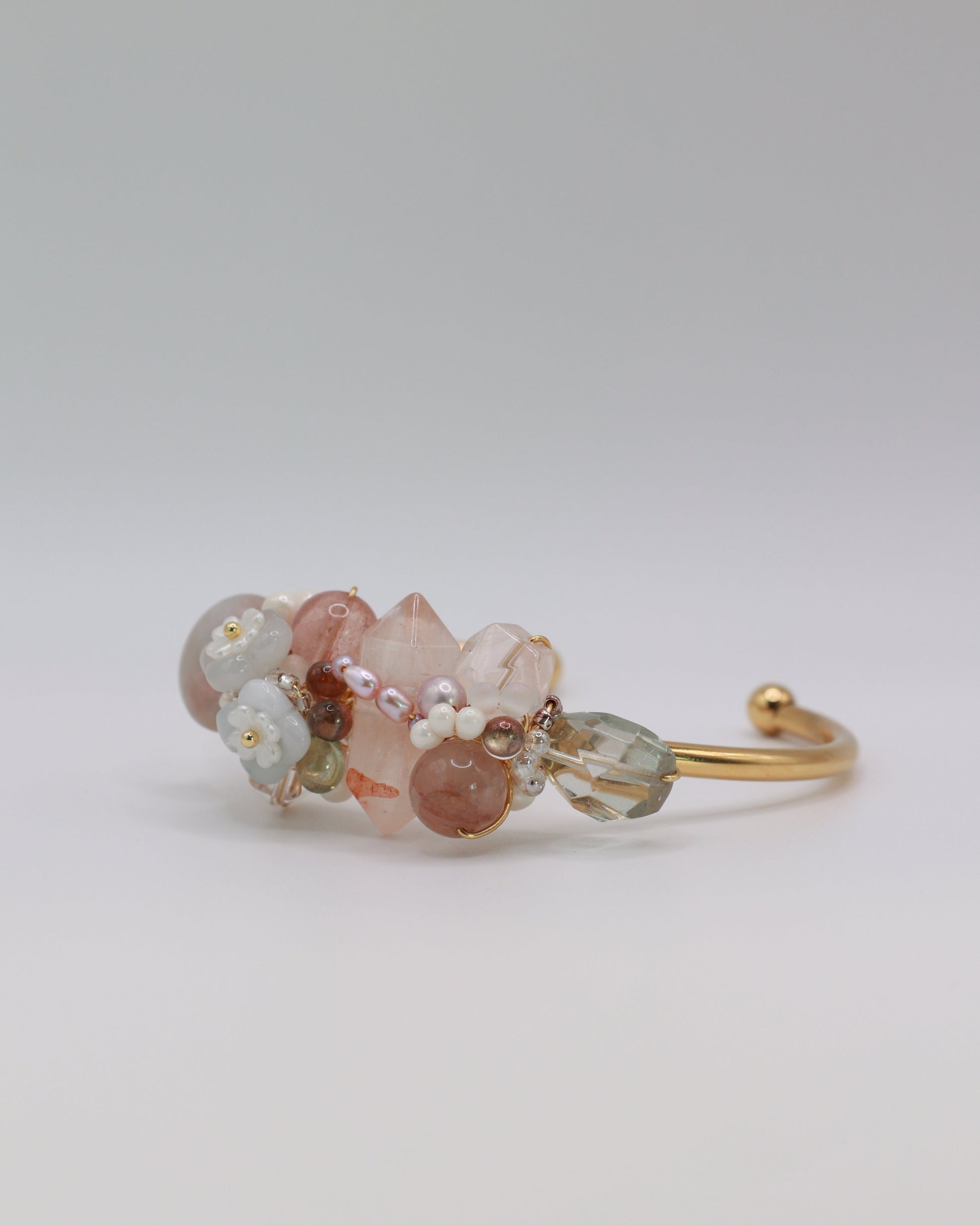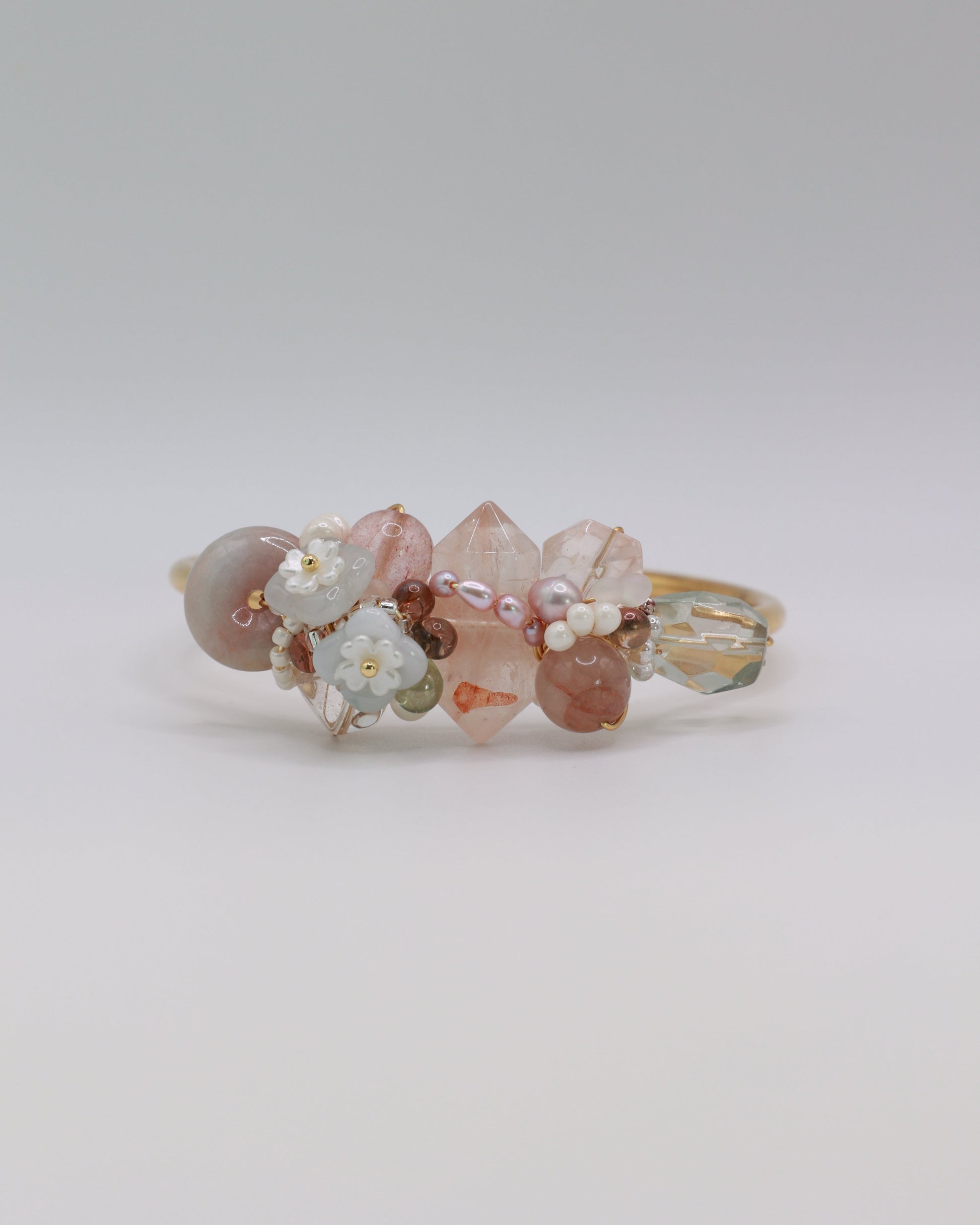 Type A Burmese Jade Donut, Type A Burmese Jade Flowers, Strawberry Quartz, Clear Quartz, Pink Hematoid, Rose Quartz, Prasiolite, Japan Imported Glass Beads