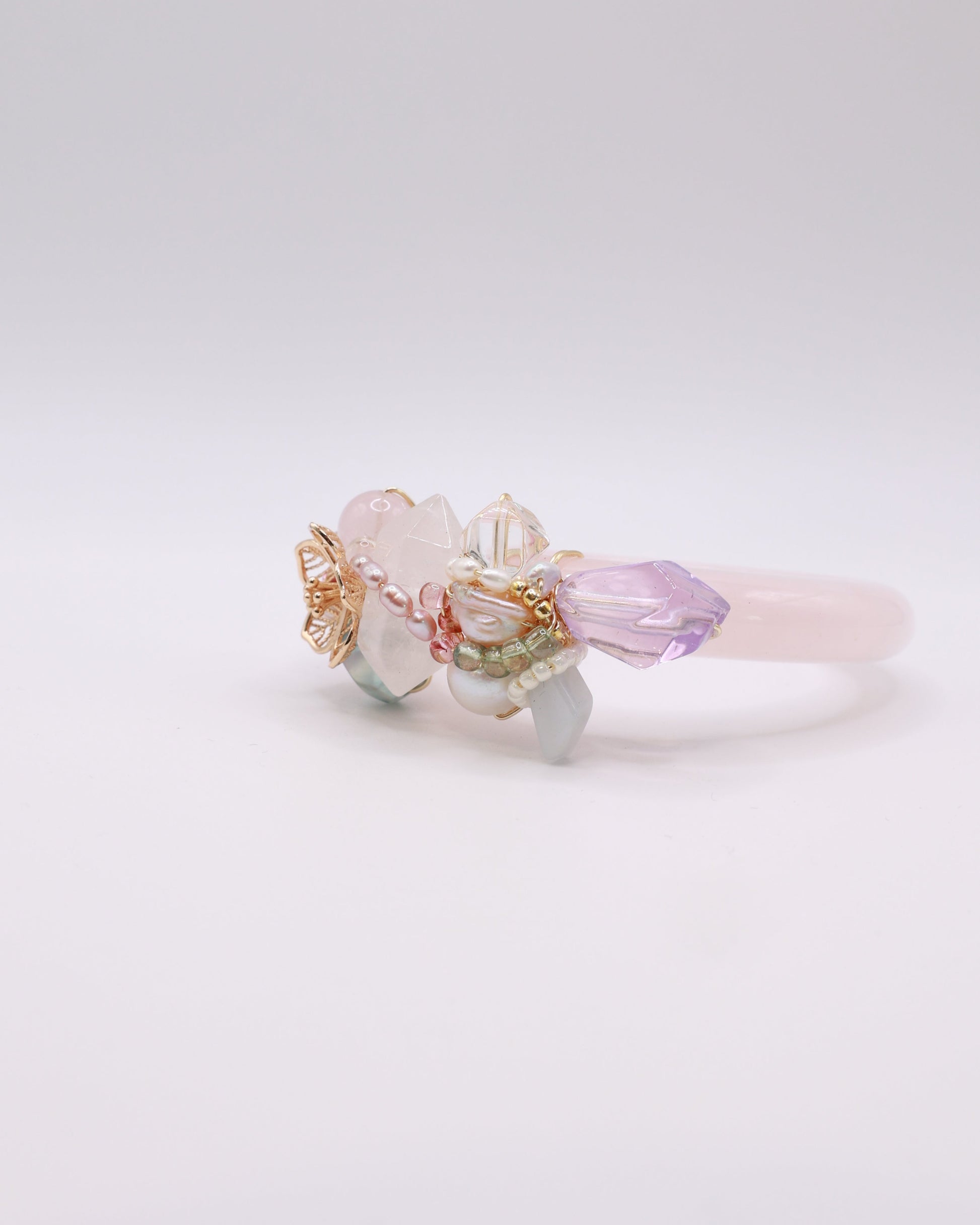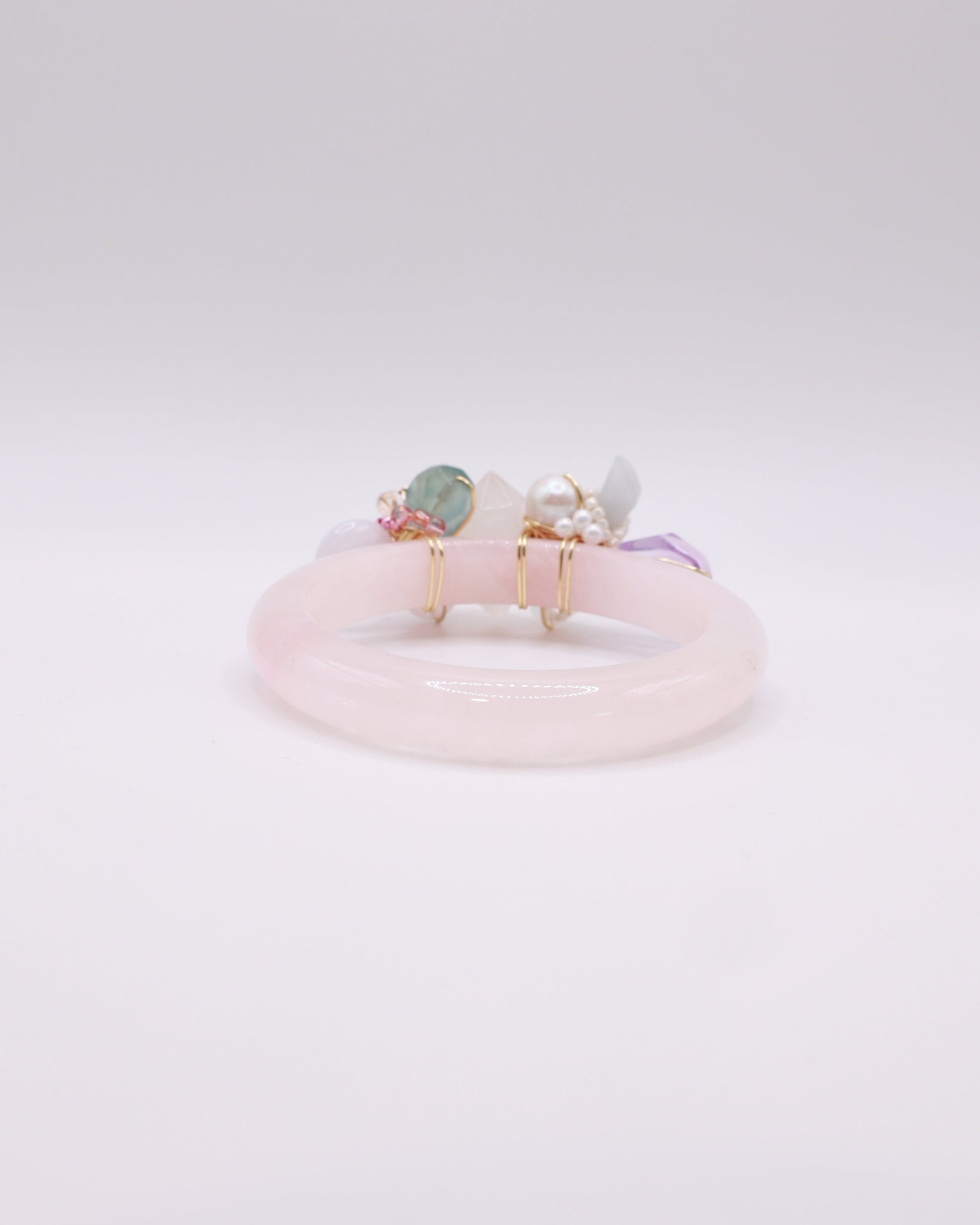 Rose Quartz Bangle, Type A Burmese Jade Donut, Green Fluorite, Rose Quartz, White Phantom Quartz, Freshwater Pearls, Clear Quartz, Type A Burmese Jade Fragment, Lavender Moon Quartz, Japan Imported Glass Beads