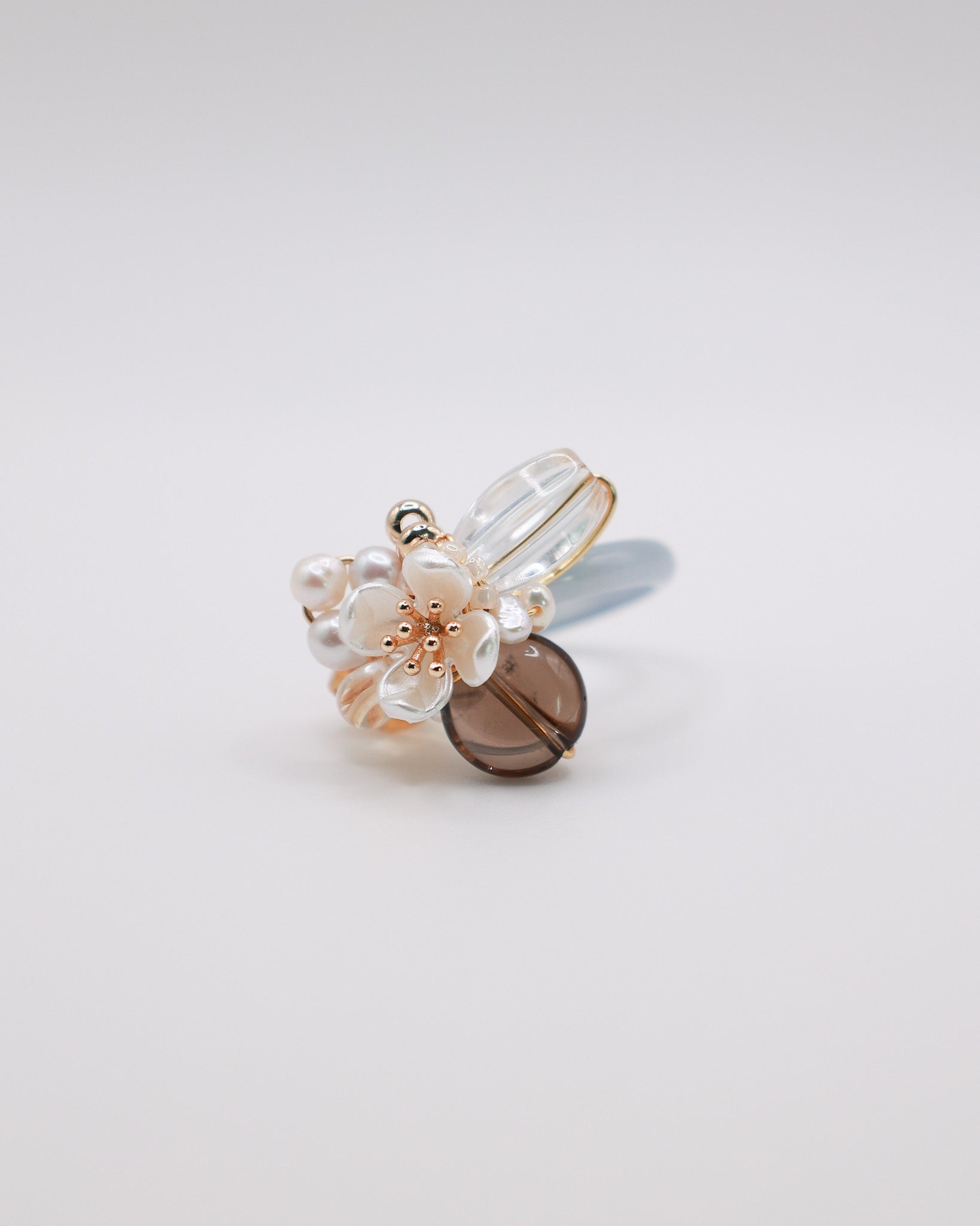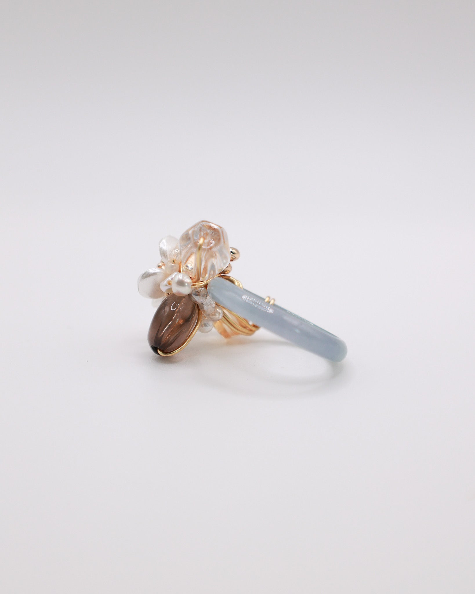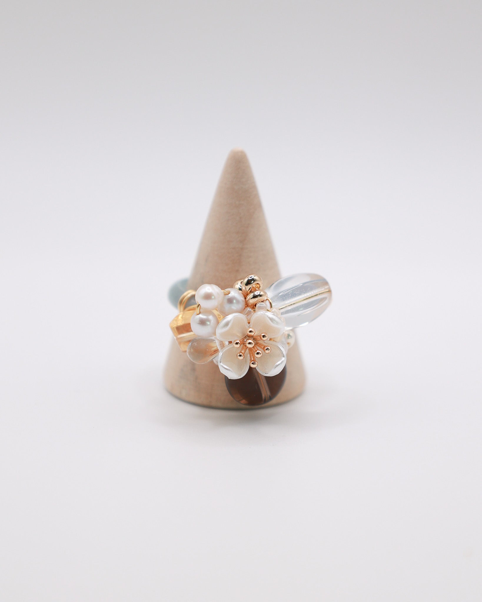 Type A Guatemala Jade Ring, Clear Quartz, Smoky Quartz, Citrine, Freshwater Pearls, Japan Imported Glass Beads