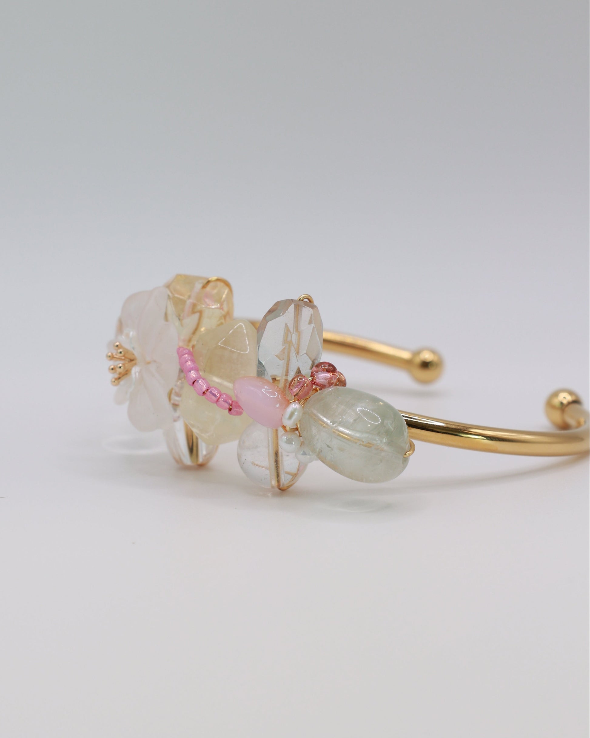 Clear Quartz, Citrine, Clear Quartz Carved Flower, Lemon Quartz, Prasiolite, Japan Imported Glass Beads