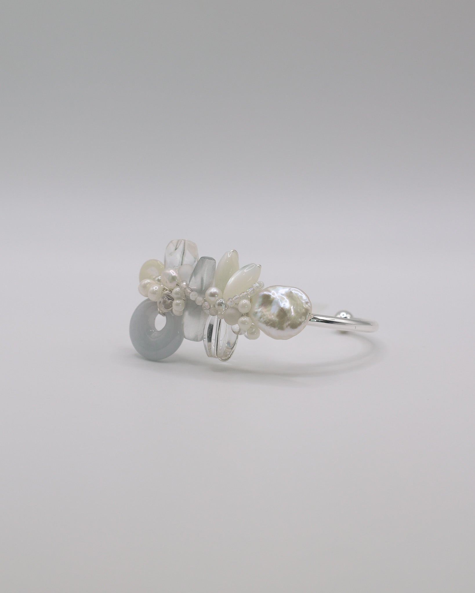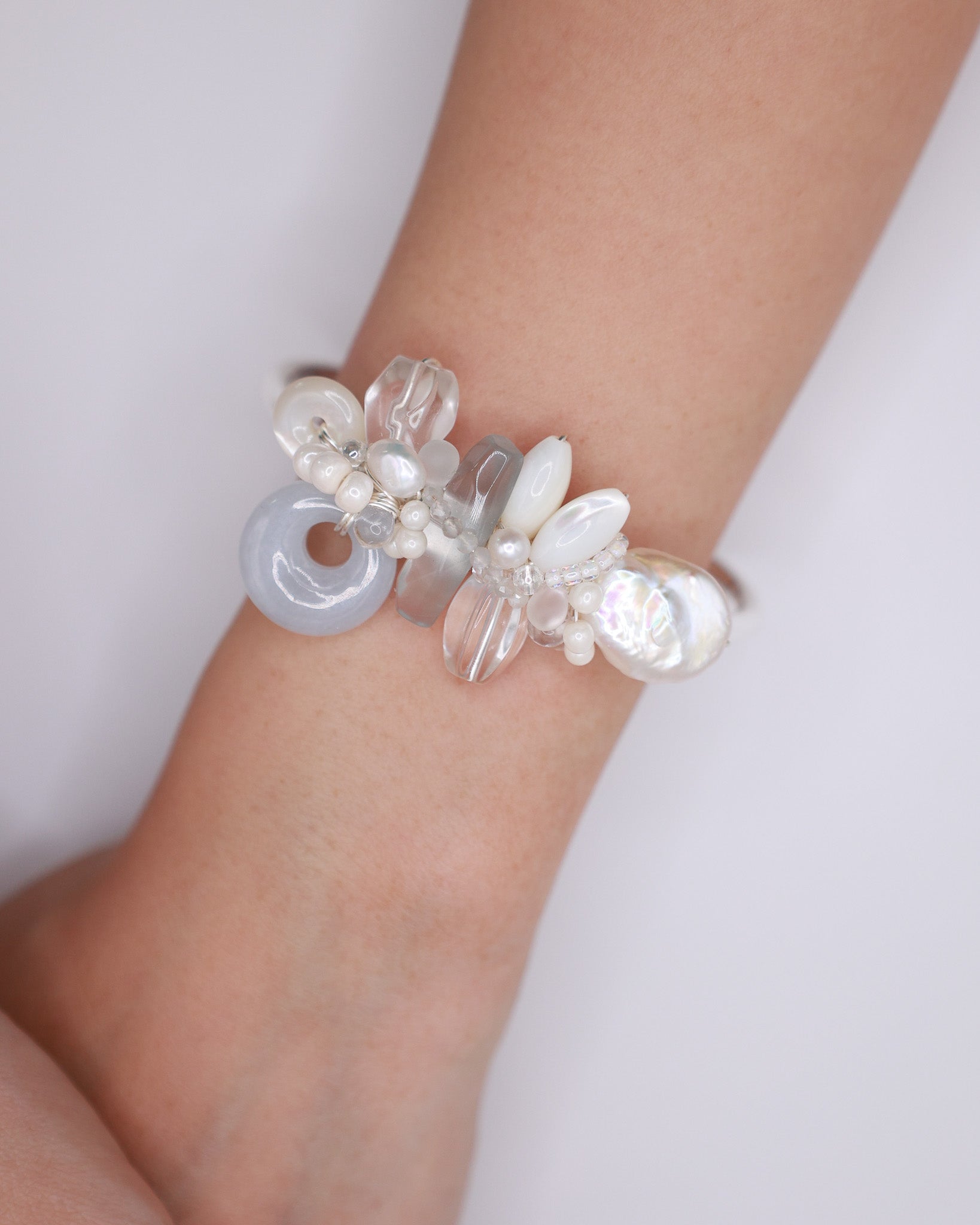 Quiet Wave carries the rhythm of calm water with soft hazy blue and jade tones flowing with quiet ease. Its light movement and subtle sheen make it a piece that feels natural, grounded, and easy to wear. Effortless, serene, and made for everyday calm.