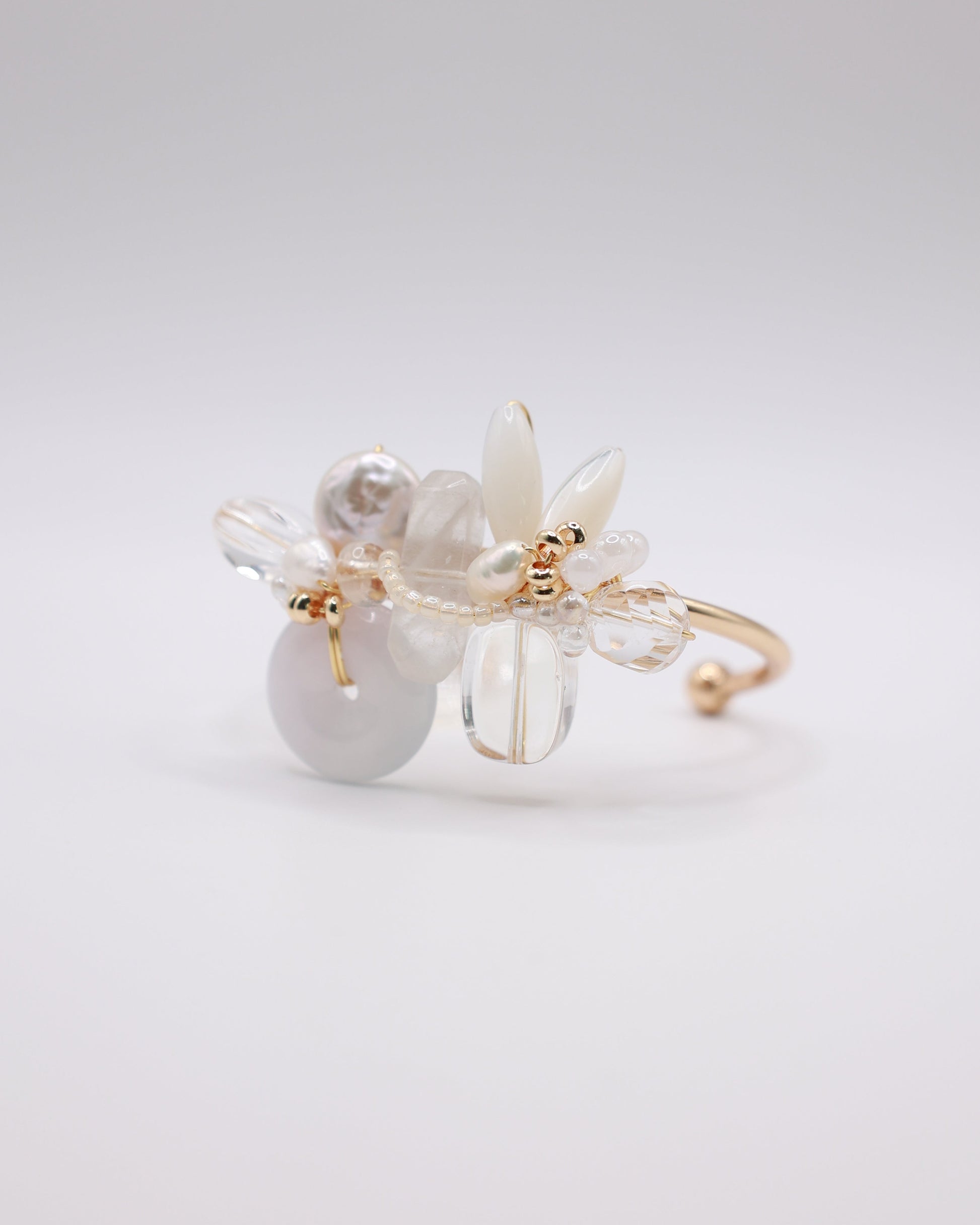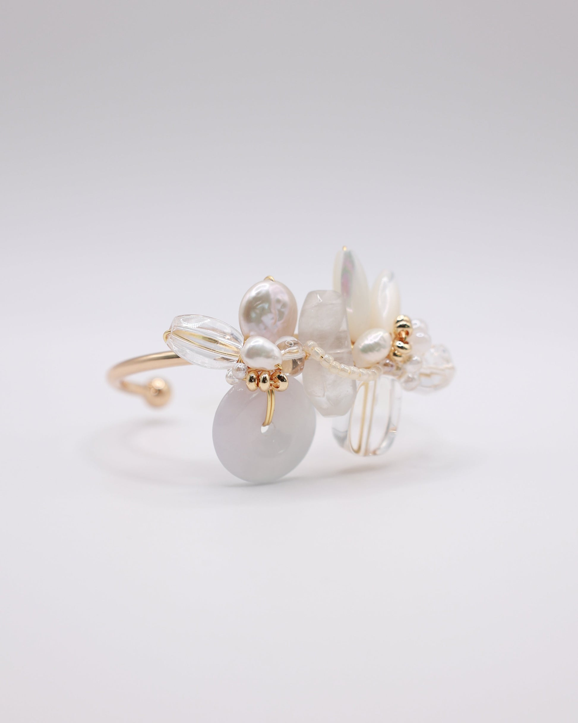 Type A Burmese Jade Donut, Clear Quartz, Rutilated Quartz, Freshwater Pearl, Natural Shell, Japan Imported Glass Beads