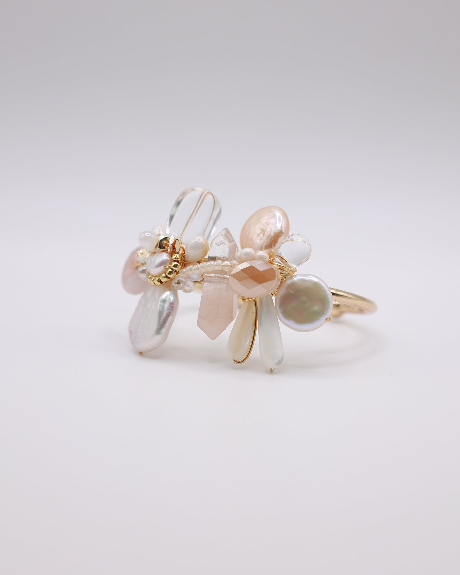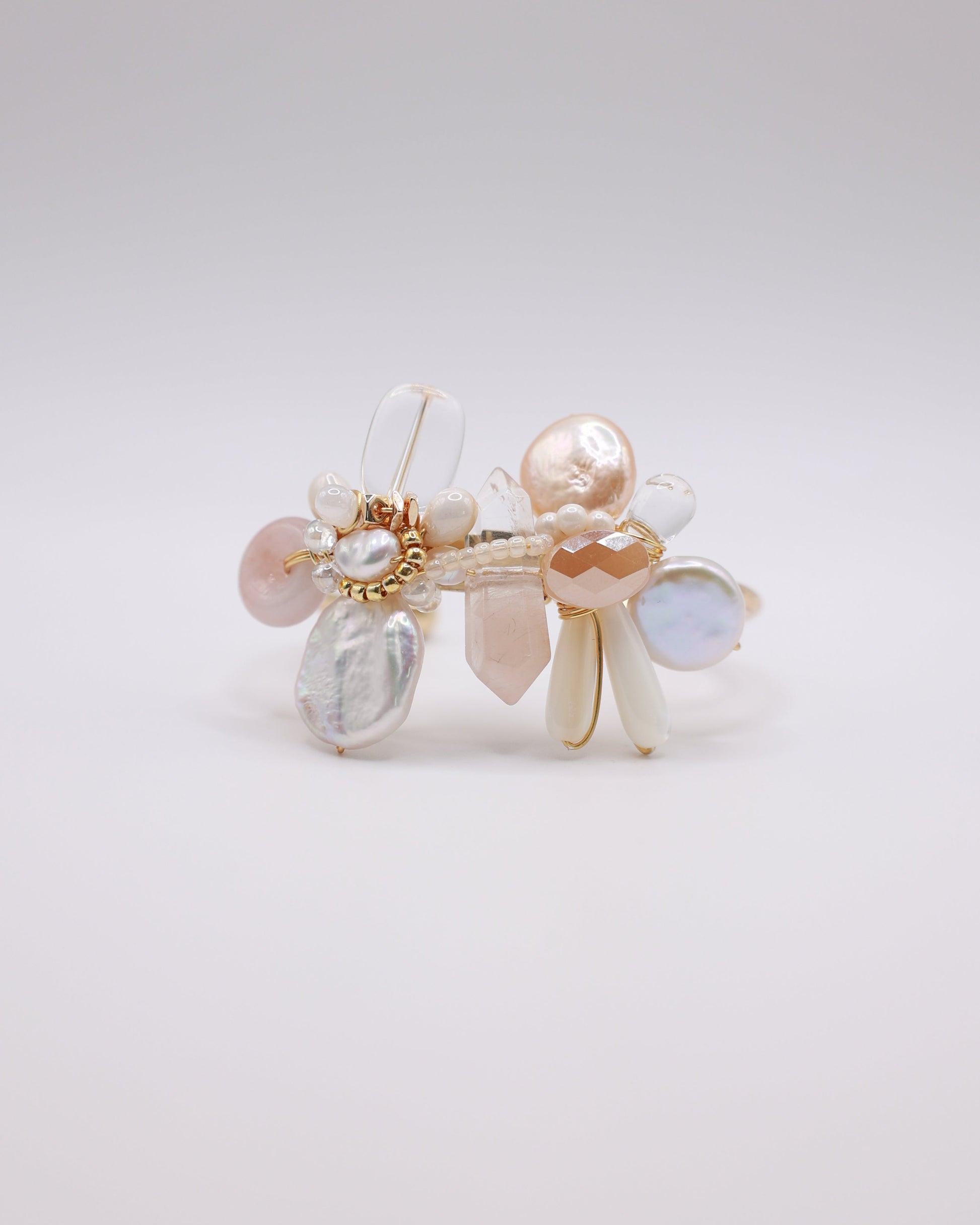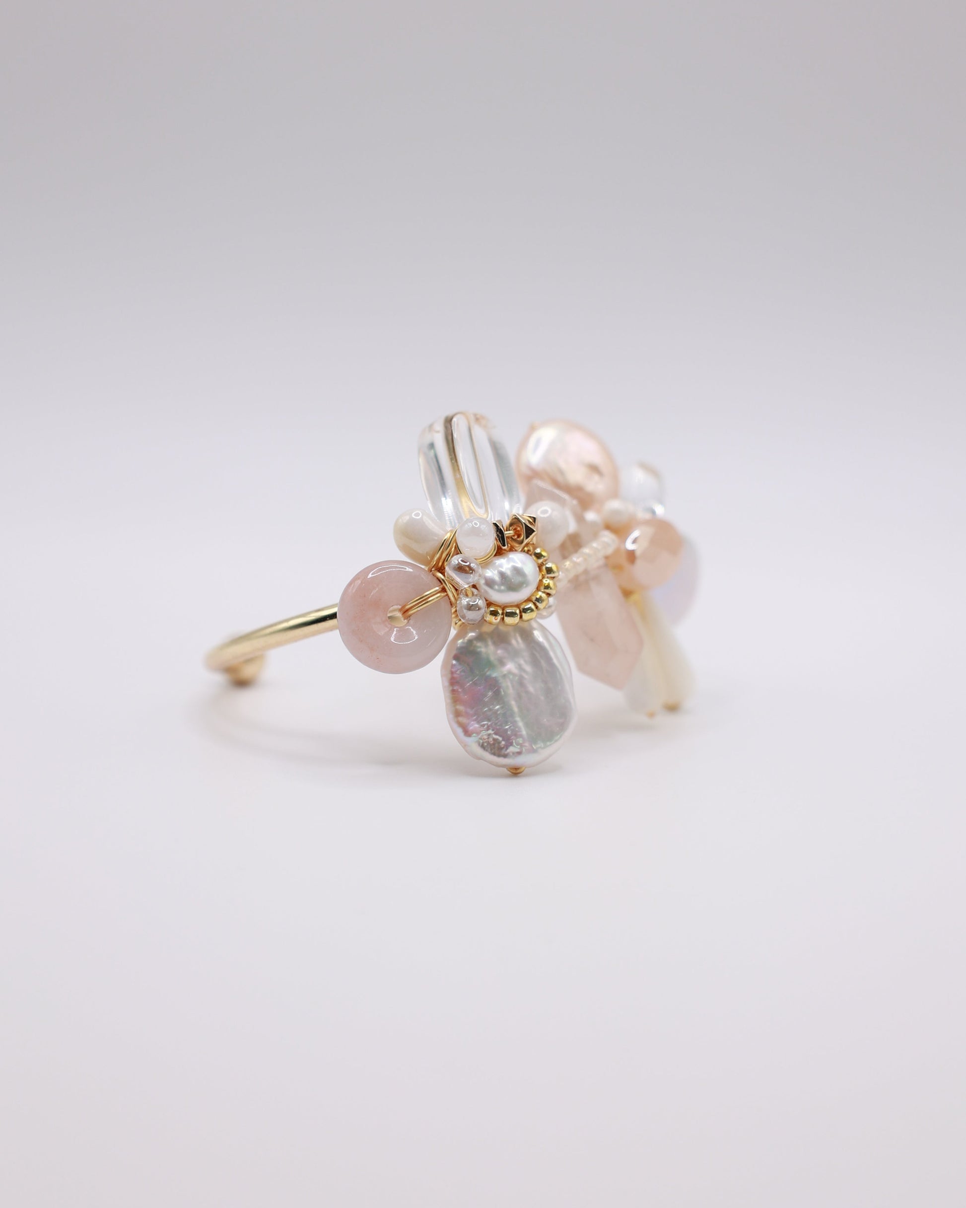 Type A Burmese Jade Donut, Freshwater Pearl, Clear Quartz, Pink Candy Rutilated Quartz, Natural Shell, Japan Imported Glass Beads