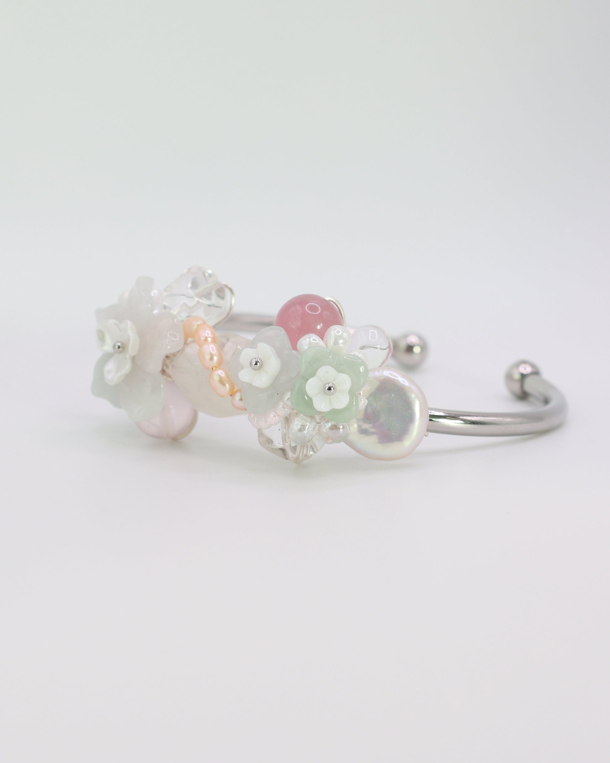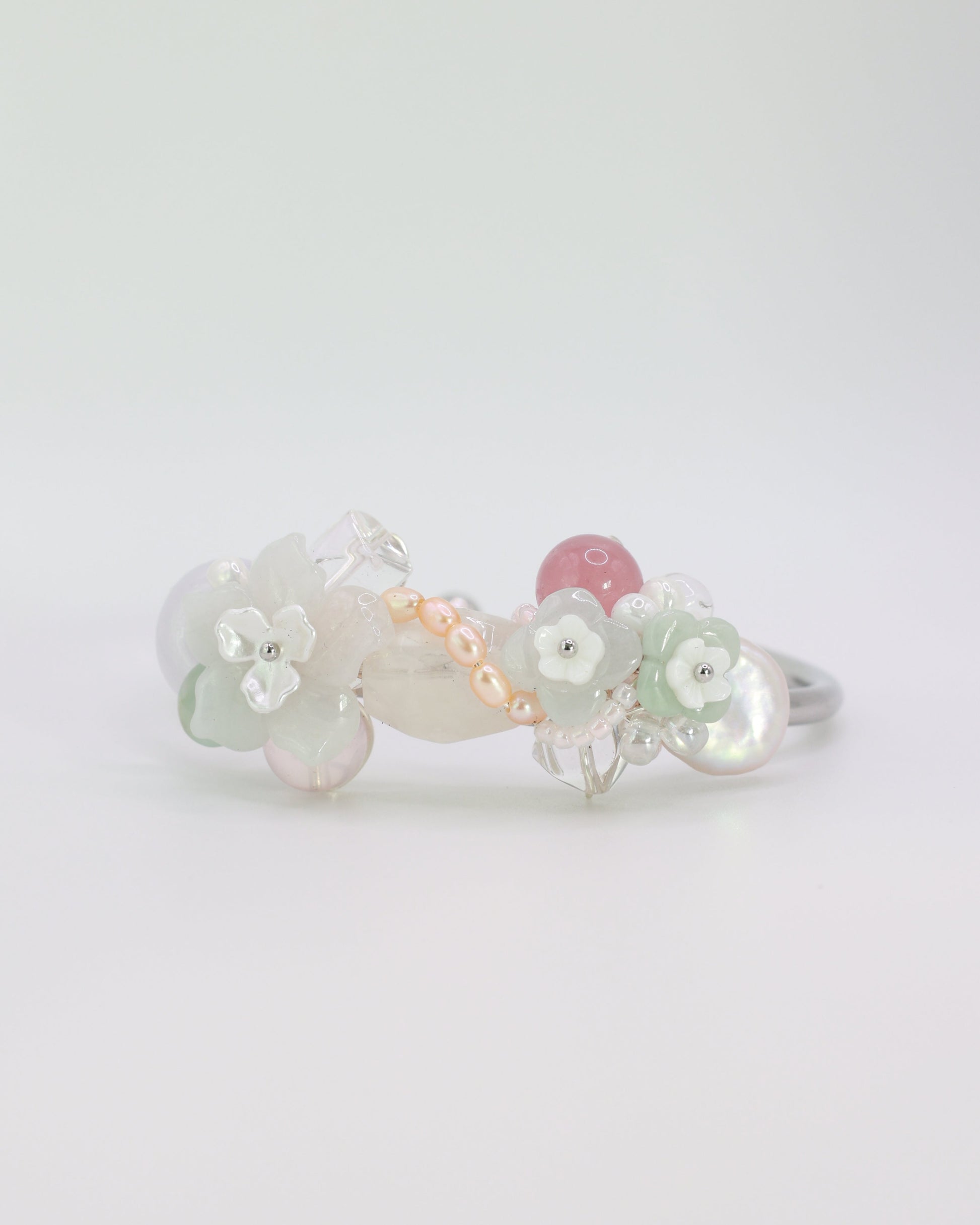 Light Type A Lavender Burmese Jade Donut, Clear Quartz, Type A Burmese Jade Carved Flower, Type A Burmese Jade Teardrop, Rose Quartz, Snow Phantom, Freshwater Pearl, Madagascar Rose Quartz, Japan Imported Glass Beads