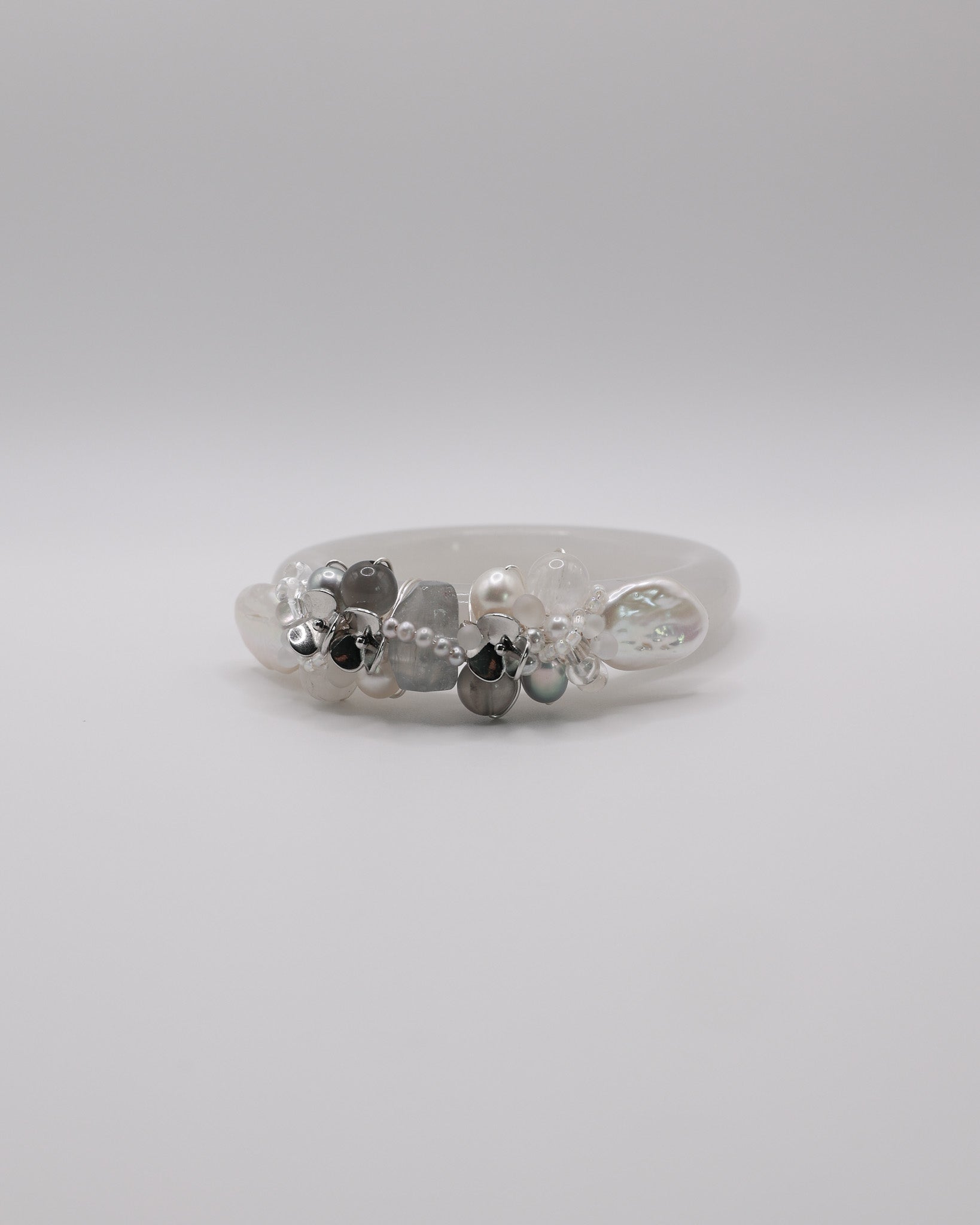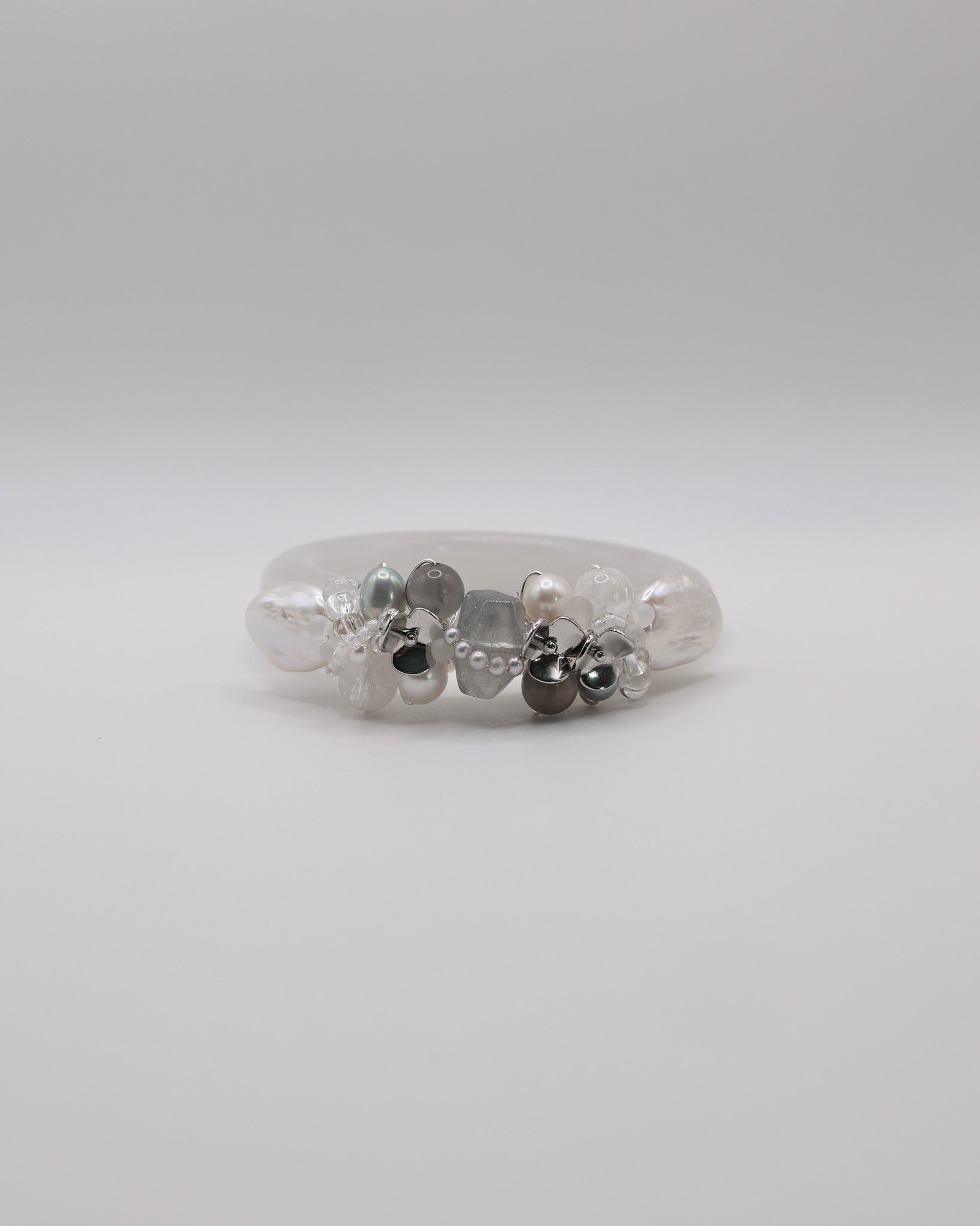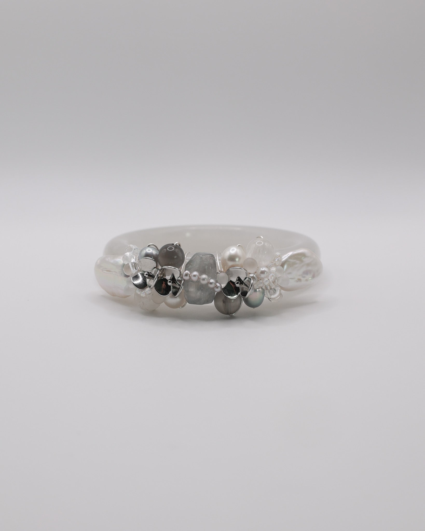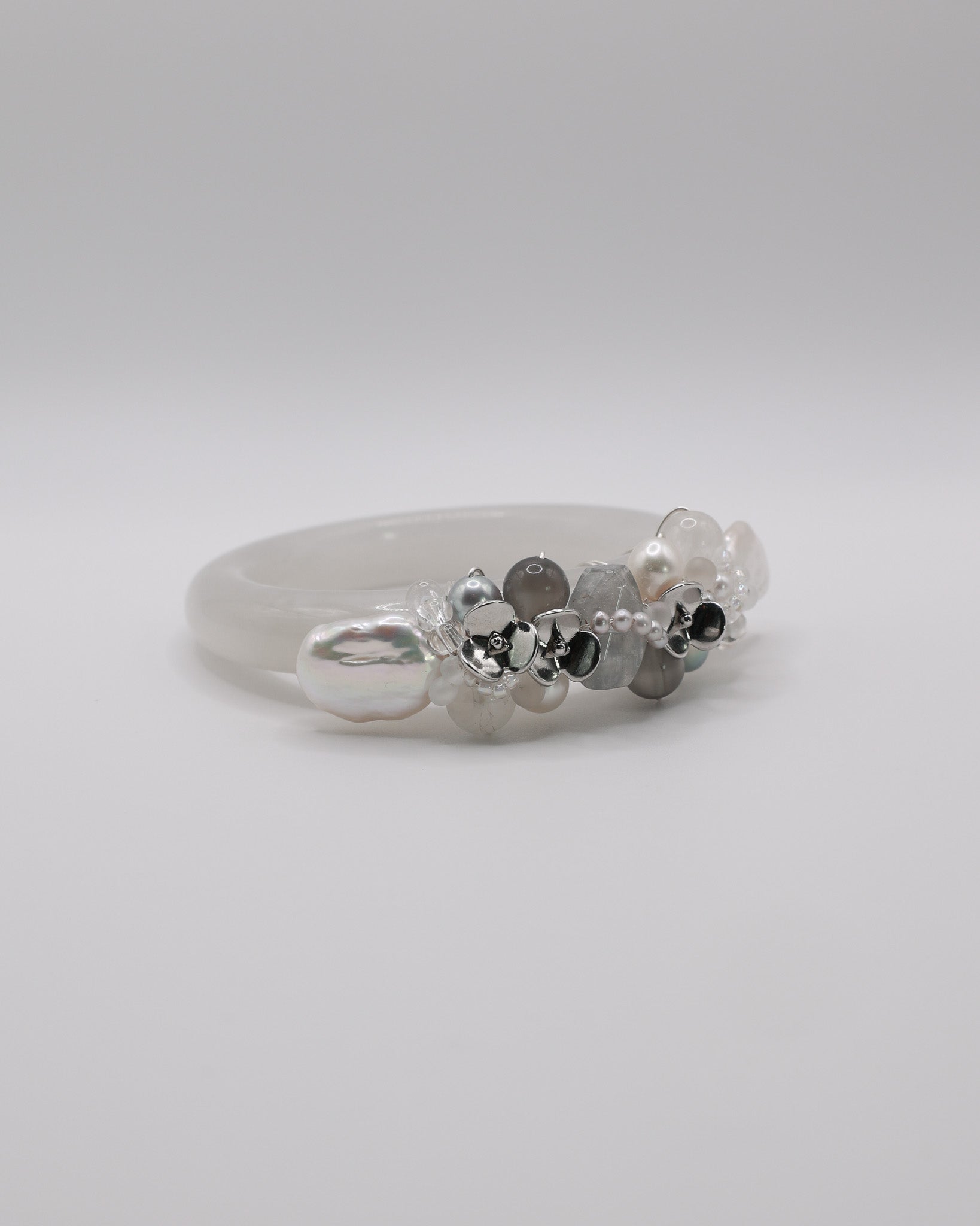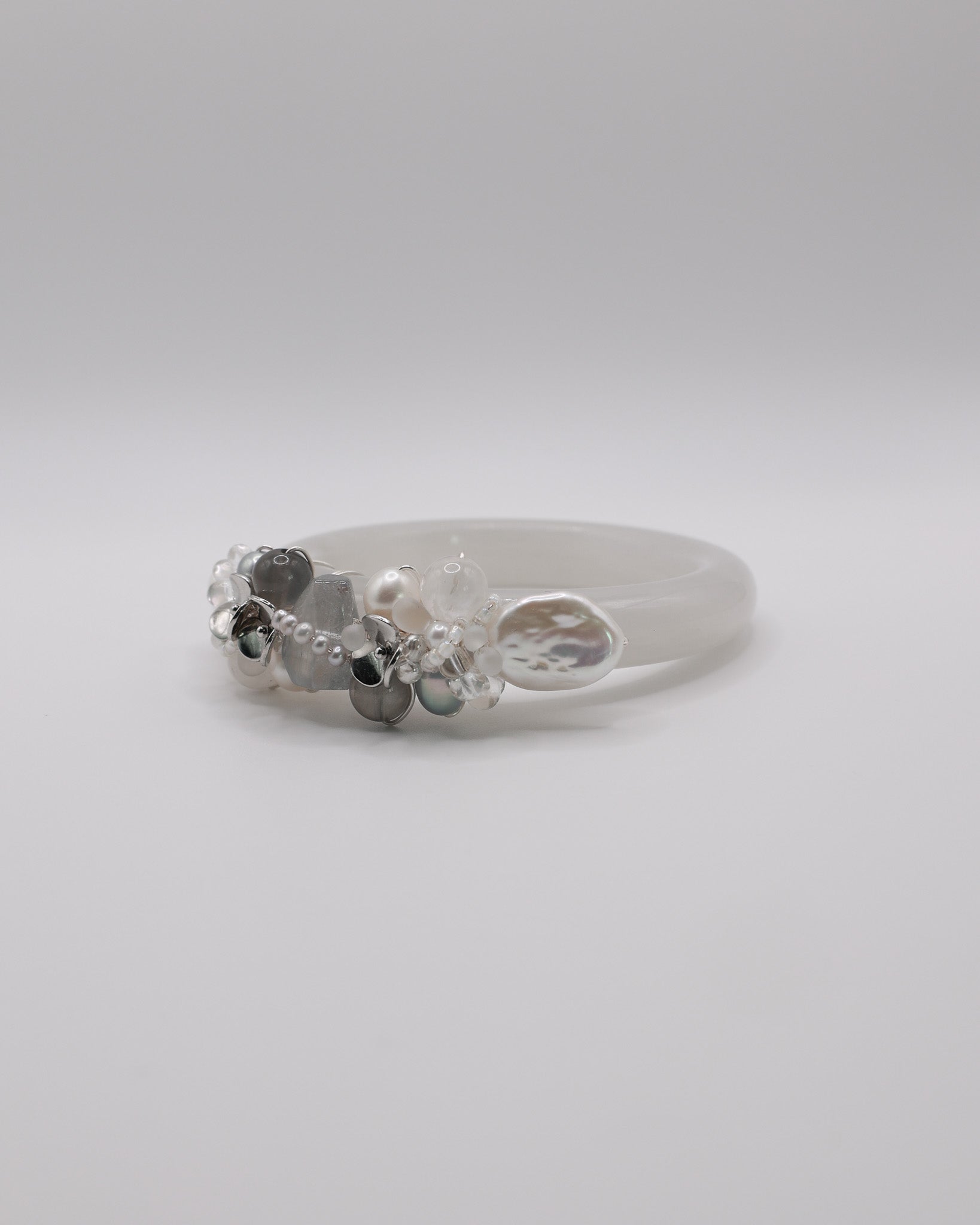 Freshwater Pearls, Black Moonstone, Blue Rabbit Hair, Snow Phantom Quartz, 14k Gold Plated Floral Accents, Japan Imported Glass Beads