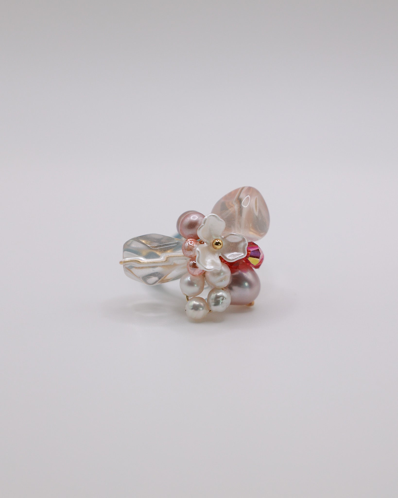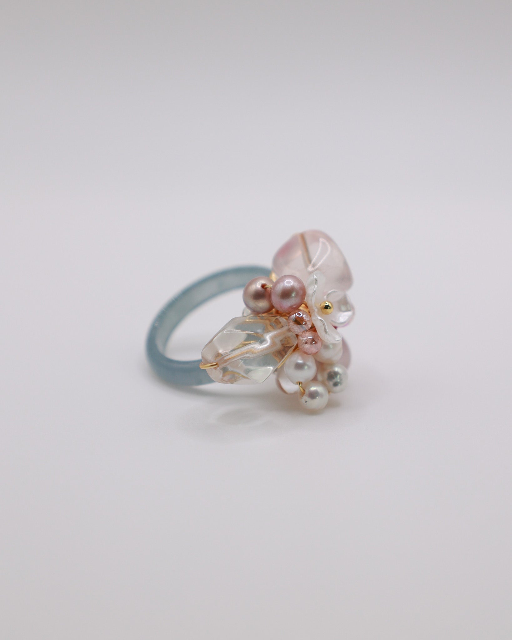 Type A Guatemala Jade Ring, Rose Quartz, Clear Quartz, Freshwater Pearls, Japan Imported Glass Beads