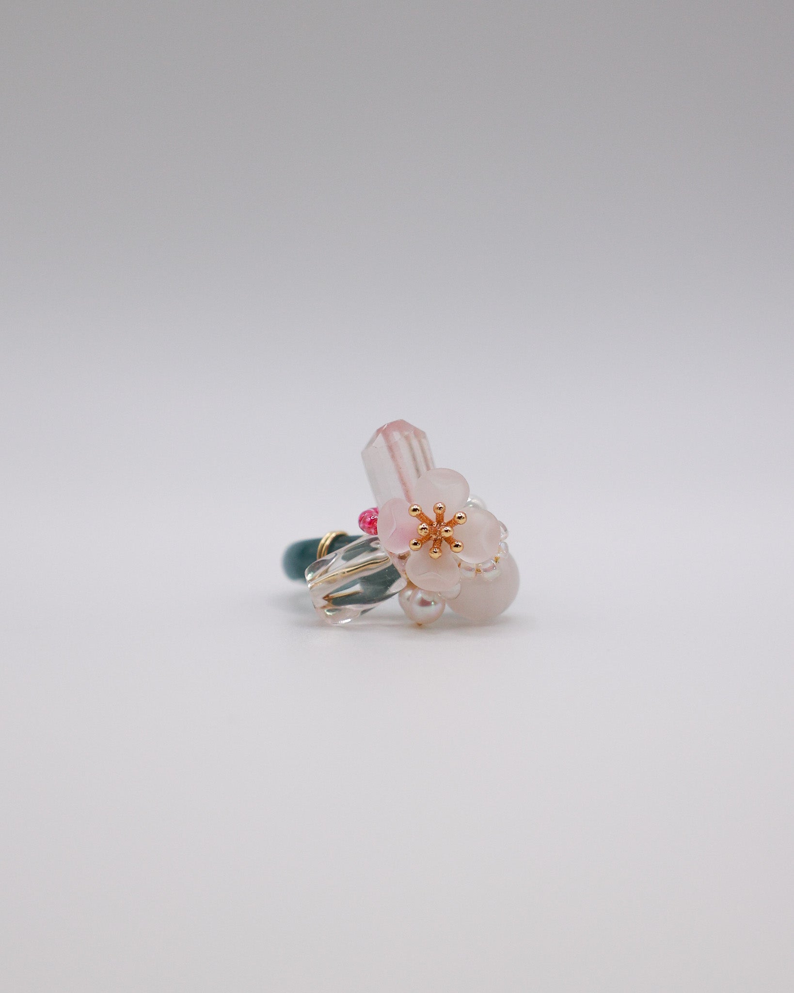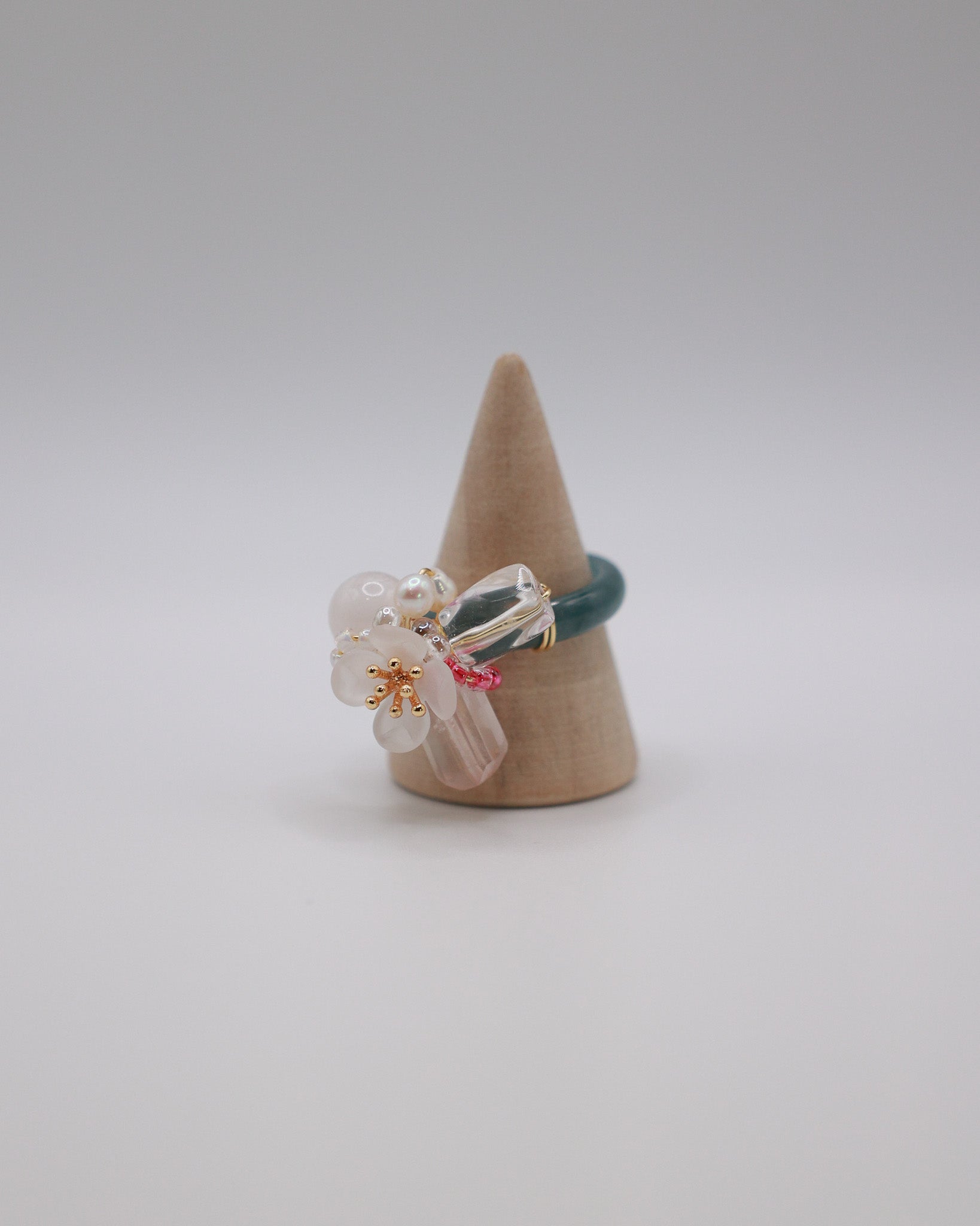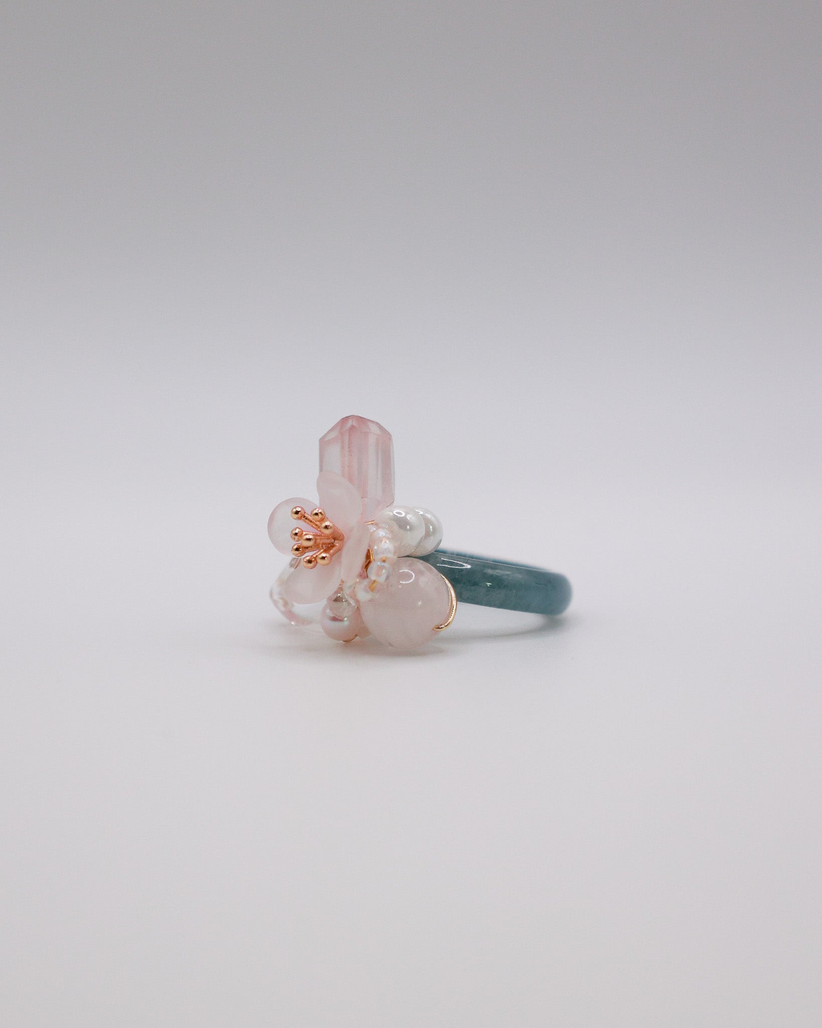 Type A Guatemala Jade Ring, Clear Quartz, Rose Quartz, Snow Phantom Quartz, Freshwater Pearls, Japan Imported Glass Beads