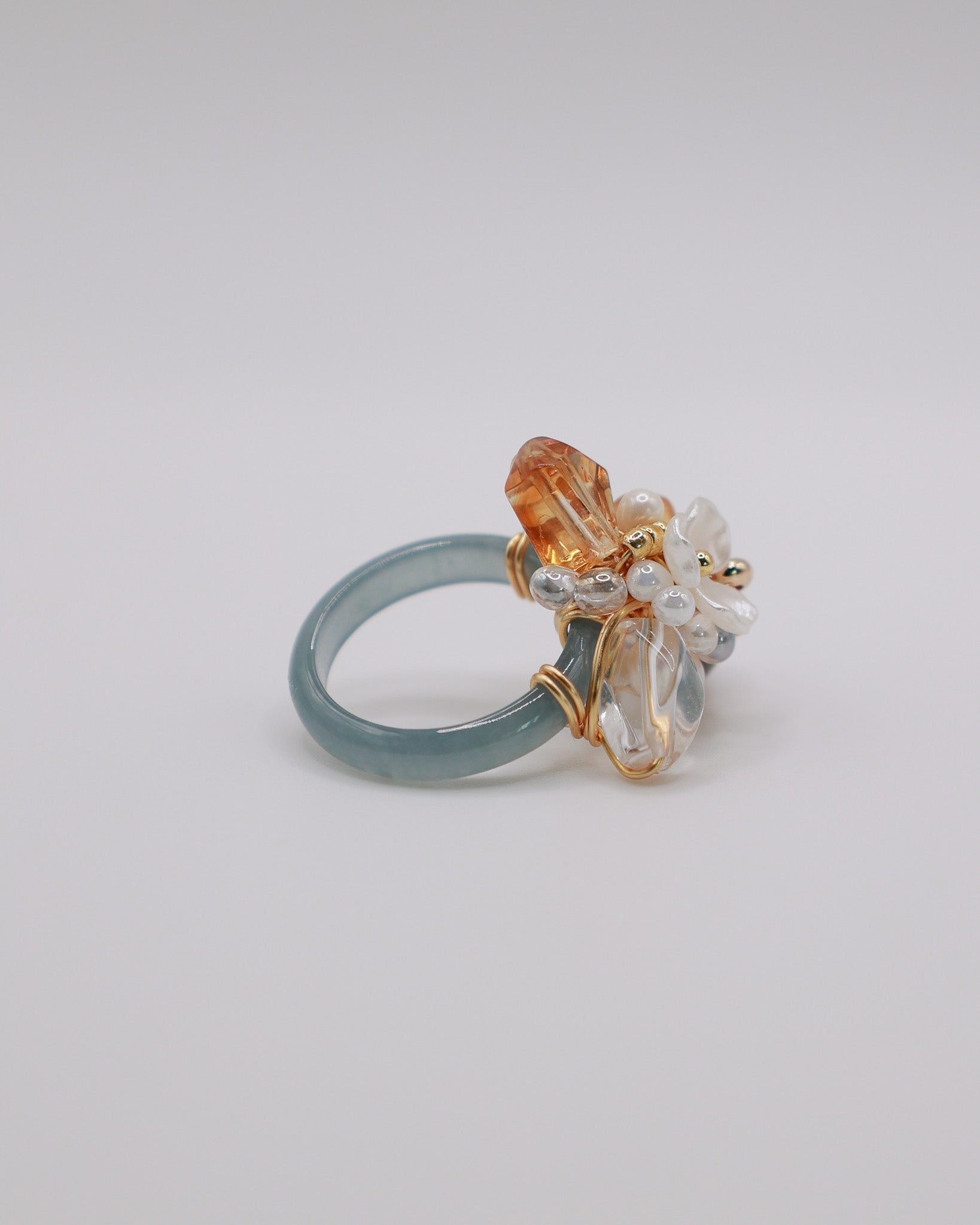 Type A Guatemala Jade Ring, Citrine, Smoky Quartz, Clear Quartz, Freshwater Pearls, Japan Imported Glass Beads