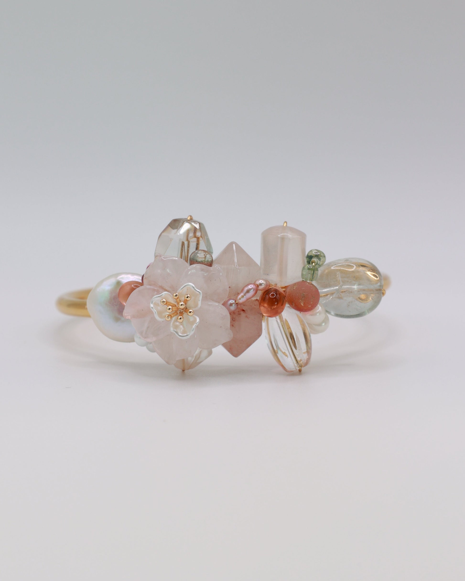 Blushing Charm is a tender piece that speaks of romance and new beginnings. With rose quartz to invite love and prasiolite to open the heart with fresh energy, it carries the sweet allure of falling in love and the gentle glow of affection.