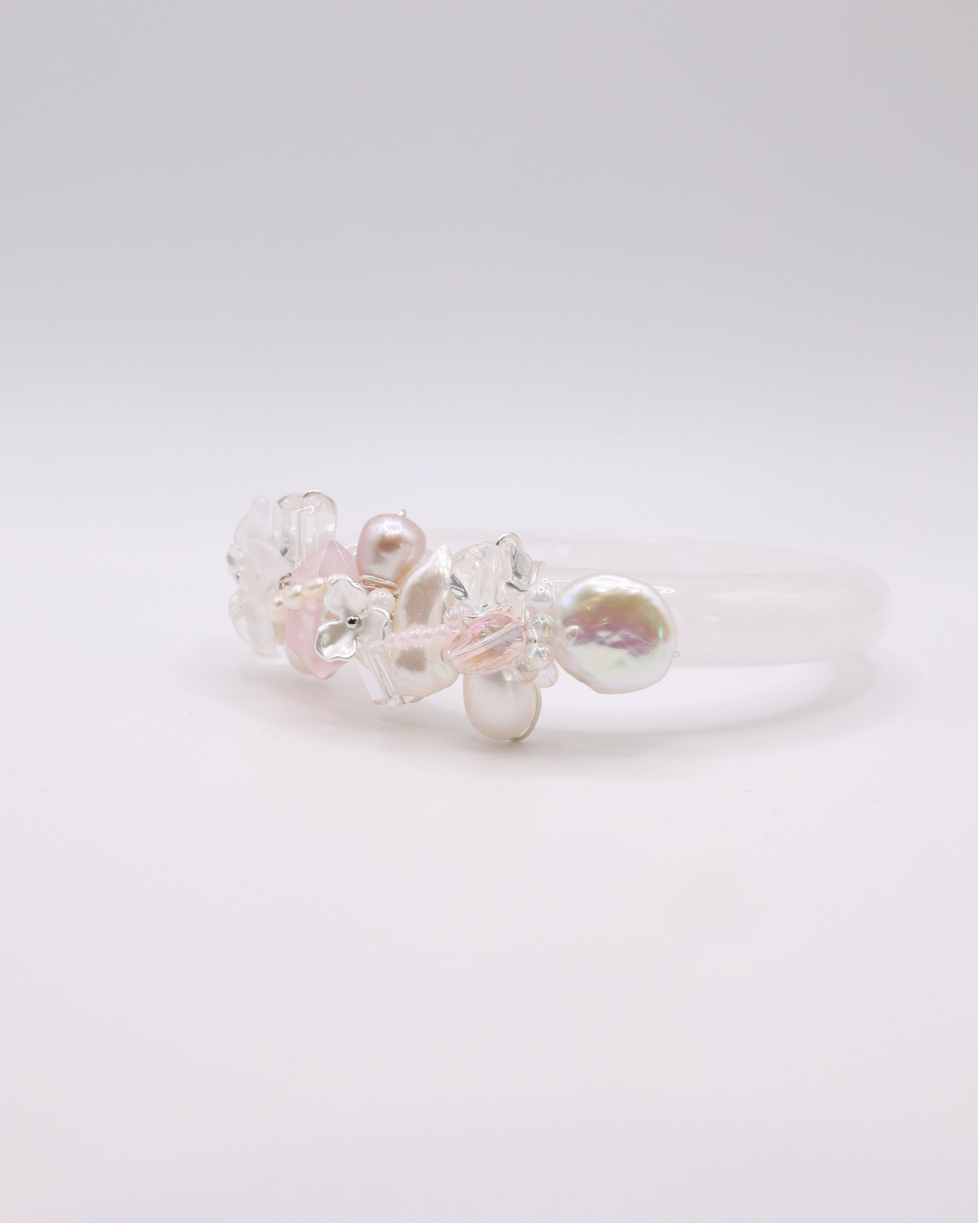 Blushing Pearl is a gentle, dainty design in soft pinks and luminous whites. Light and graceful, it carries a quiet elegance that feels tender and refined. Definitely a piece that speaks of subtle beauty and timeless charm.